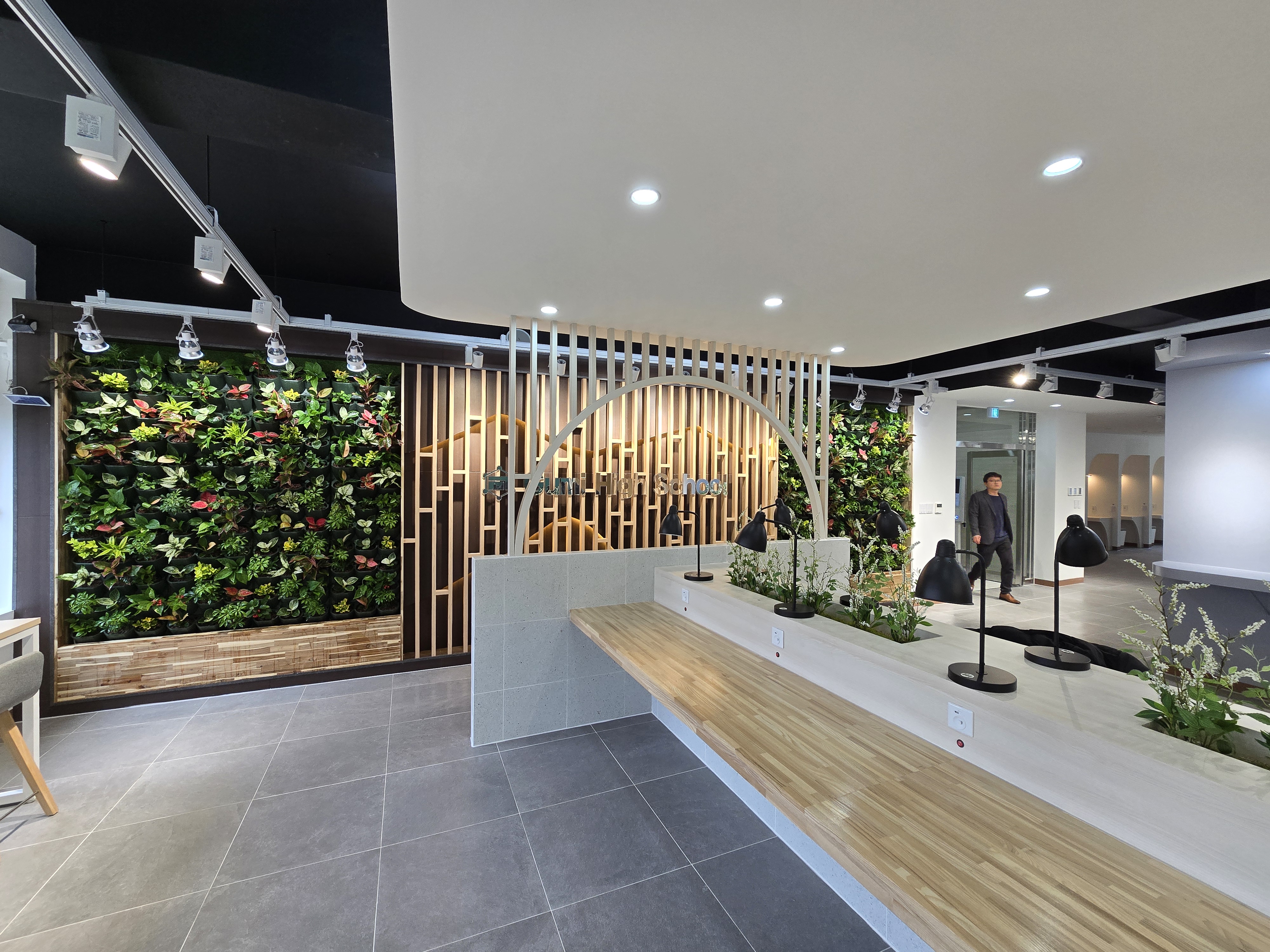 구미고등학교는 1979년에 설립된 고등학교로 2층에 학생들을 위해 내부 인테리어 공사를 진행하여