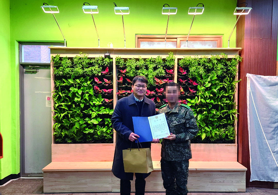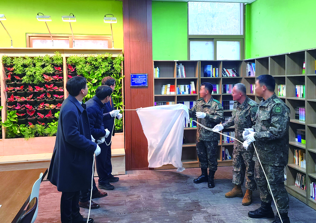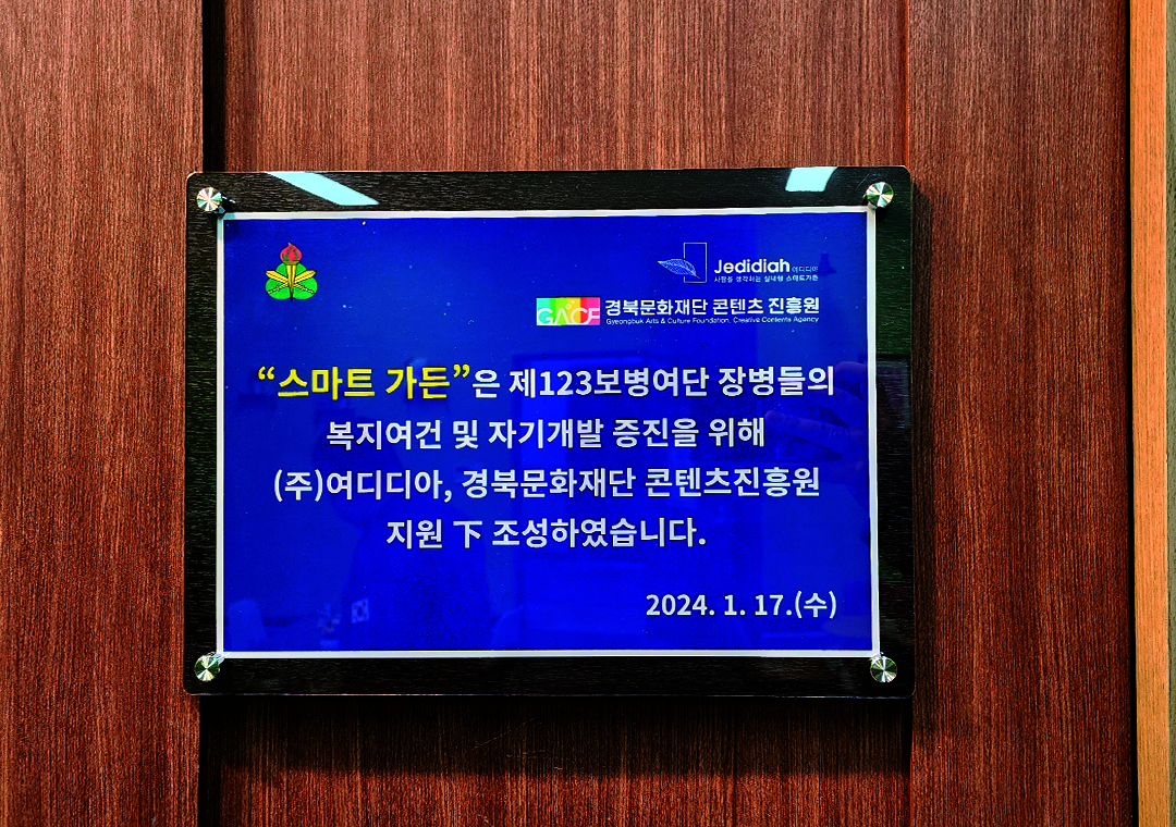 육군 50사단 일격여단 안동대대 내 등대도서관에 스마트가든 기부에 대한 현판식 행사가 있었습니다.